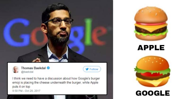 He Tweeted Difference In Burger Emoji Of Apple & Google. Sundar Pichai Gave Him The Best Reply Reply here-->… https://t.co/NBLWCHZ2IA