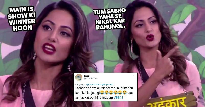 Hina Khan Says I Am The Winner Of The Show & Will Throw Everyone Out. Gets Slammed Left And Right. Watch here=>https://t.co/xXMtlqqvMr https://t.co/WocHjcwTdR