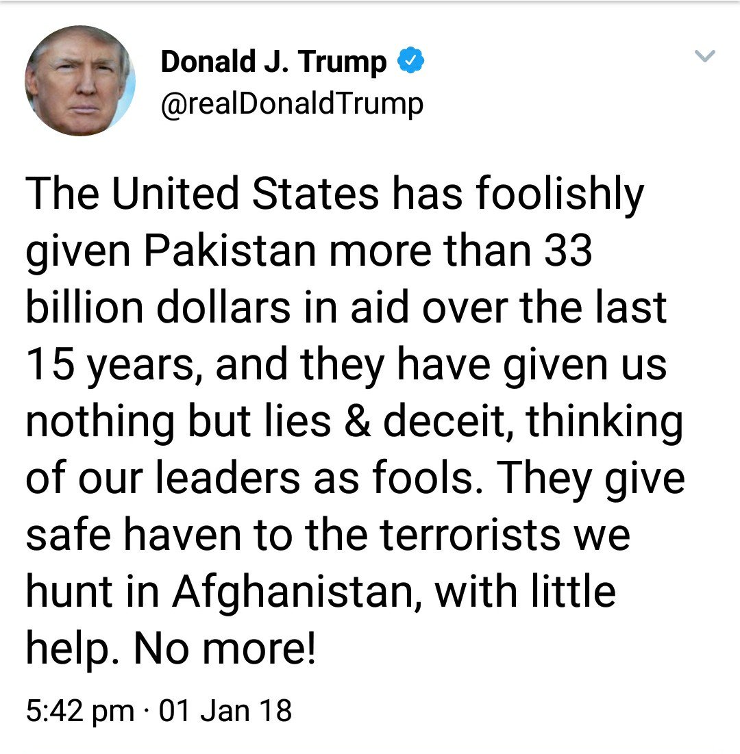 Donald Trump Sends Out A Strong Warning To Pakistan, Says No More.. #TrumpDumpsPak #TrumpPunishesPak Full story=>https://t.co/lcK2samSD6 https://t.co/VsNKLKhnfB