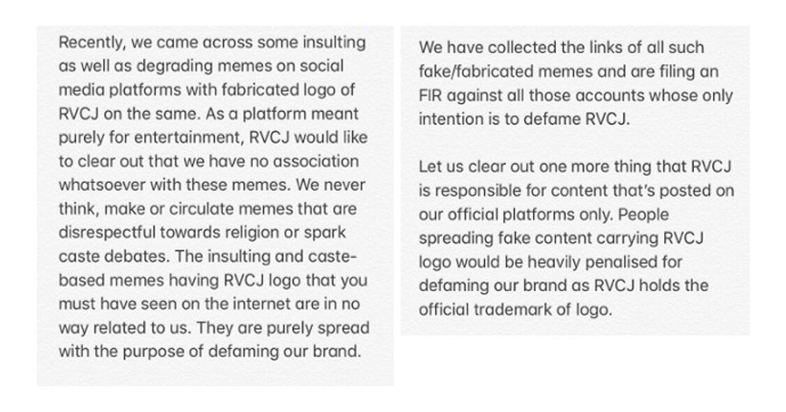 Official Statement from RVCJ Digital Media Pvt Ltd. https://t.co/UwnD7jsyLz